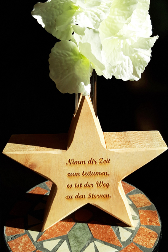 Zirbenvase in Sternform, mit Spruch, das perfekte Geschenk zur Weihnachtszeit